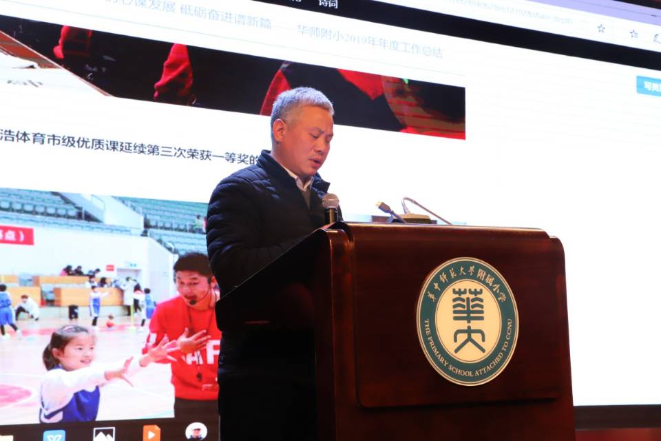 沈爱华校长满怀喜悦之情,向与会老师预祝新年好,他以一份“豪华加长版”年度工作总结,回顾了附小过去一年取得的成就和突破的难关,也为大家明确了新一年的奋斗方向,勾勒出了2020年附小的宏伟蓝图。