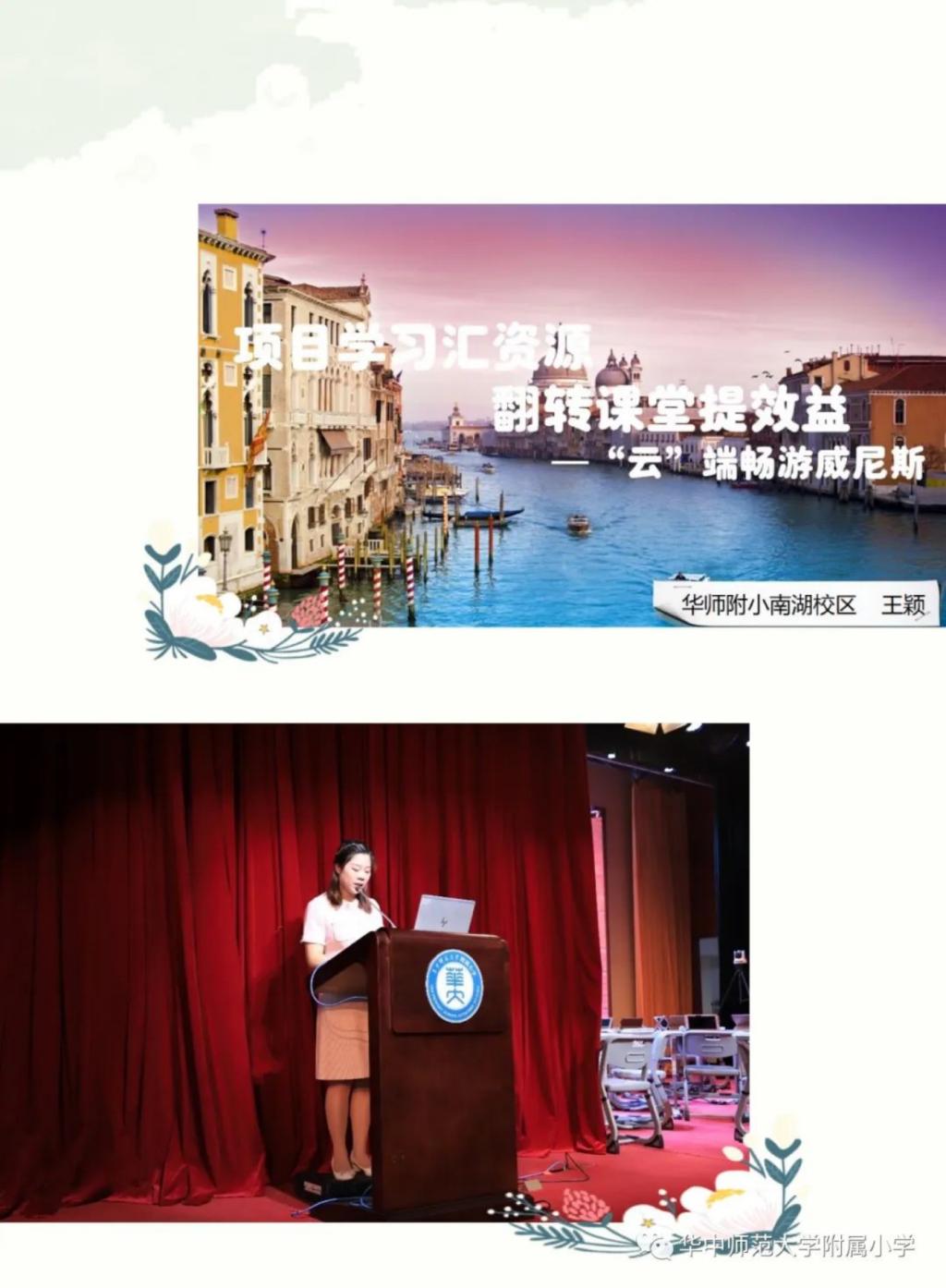 接着,进行优质课与说课展示,参与第一节优质课展示的是来自华师附小南湖校区优秀骨干教师代表王颖老师,她所设计的《威尼斯的小艇》秉持信息技术与语文学科深度融合的原则,贯彻“以生为本”的教学理念,采取翻转课堂的形式,通过制作课程专属APK程序,平台及时交互、实时的大数据分析、并融入VR技术等信息化手段,让学生身临其境地来到了威尼斯,真切地感受到威尼斯的地域文化和风土人情。同时借助学生们非常感兴趣的抖音平台自己搜索信息,并自主整合相关信息资源,汇聚丰富的项目内容,高效地完成了学习任务、实现了学习能力的显著提升。