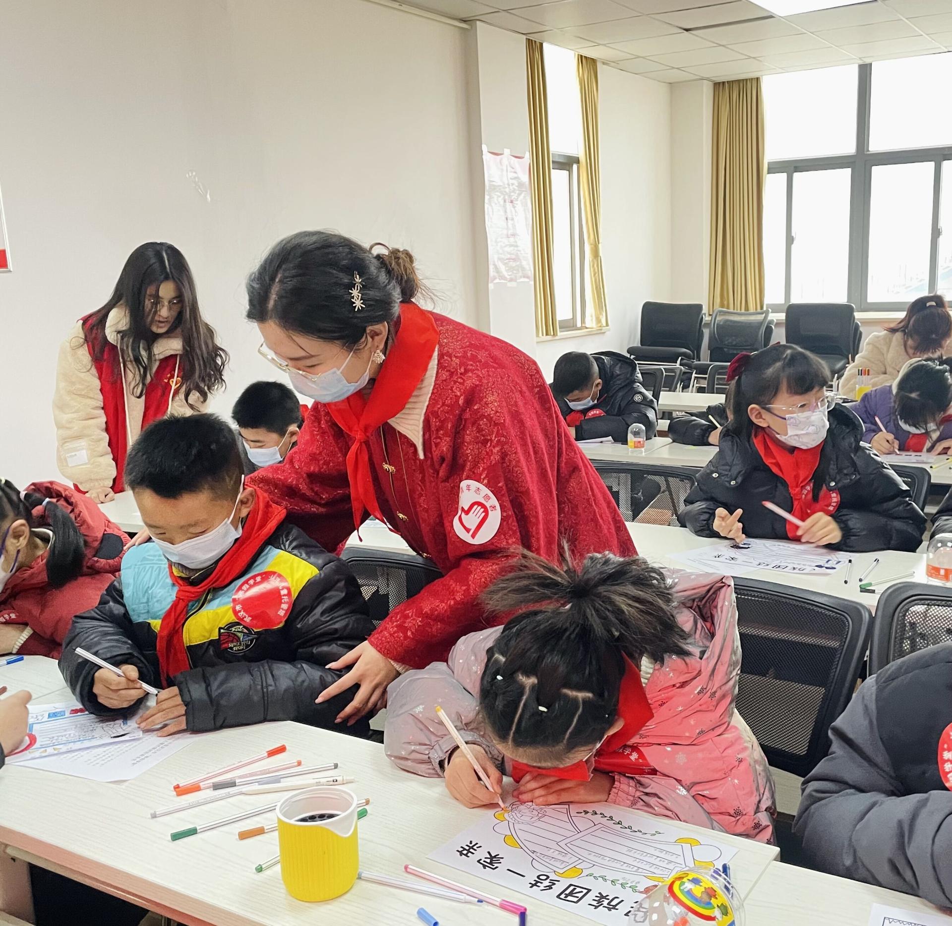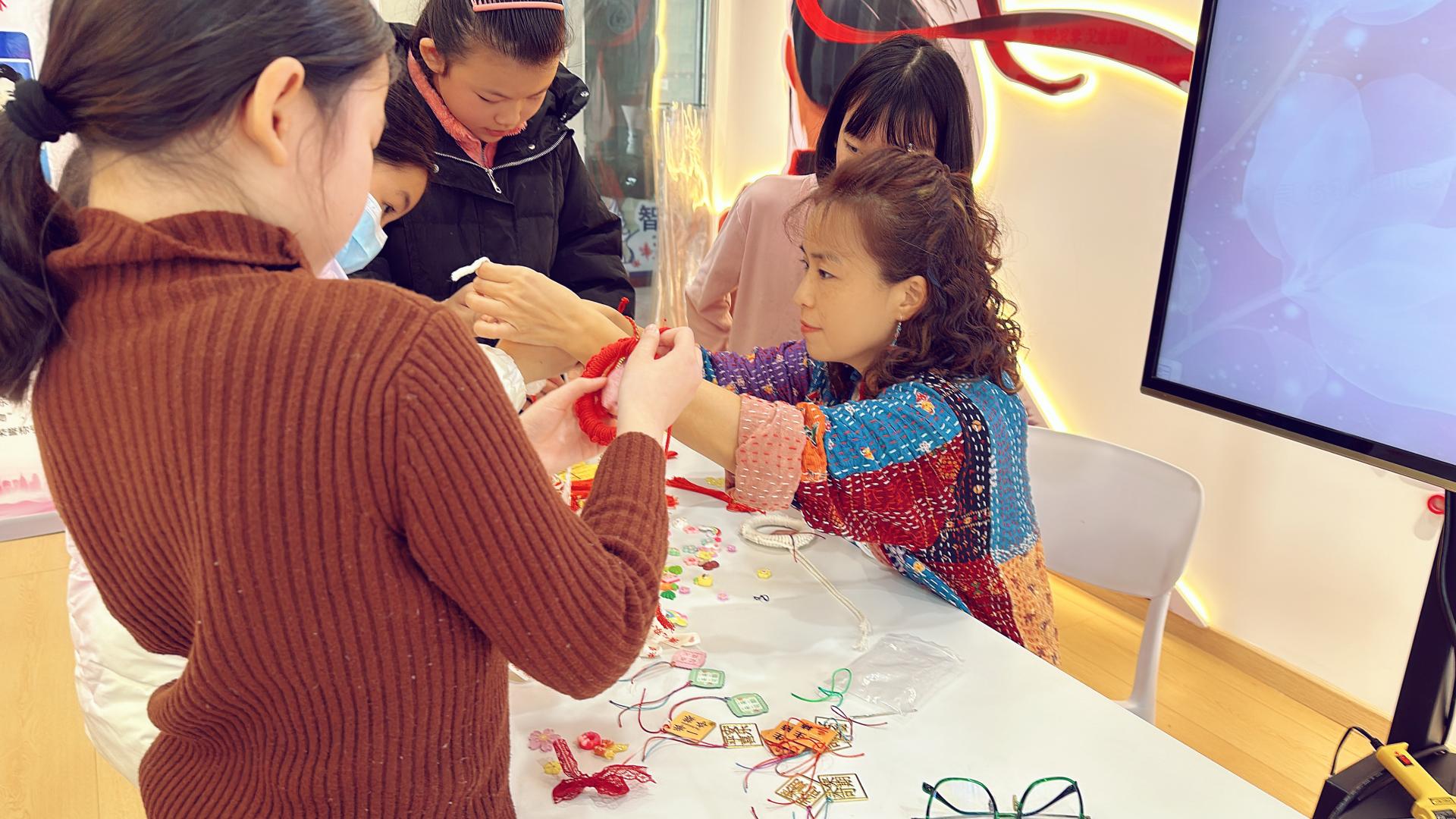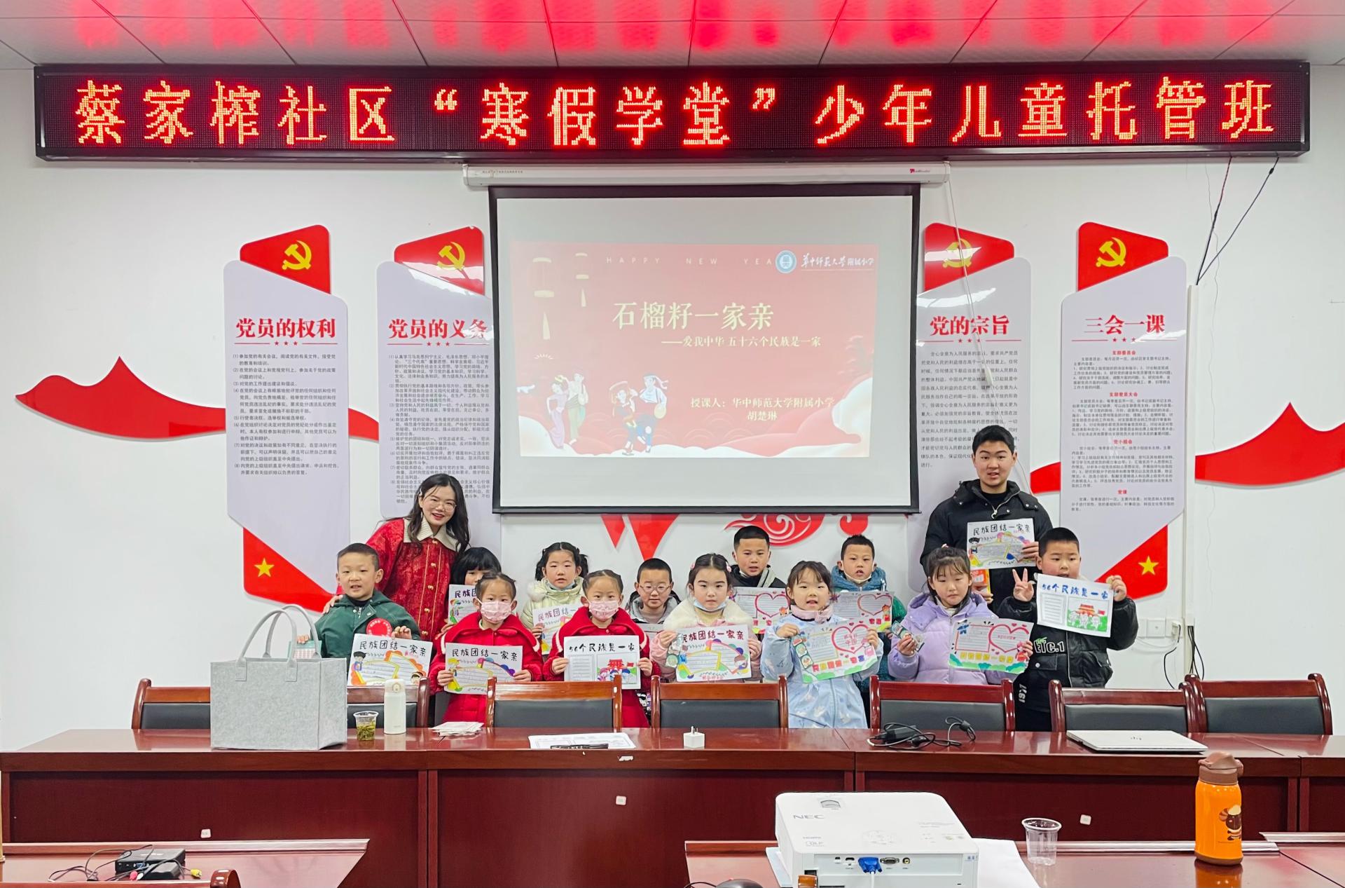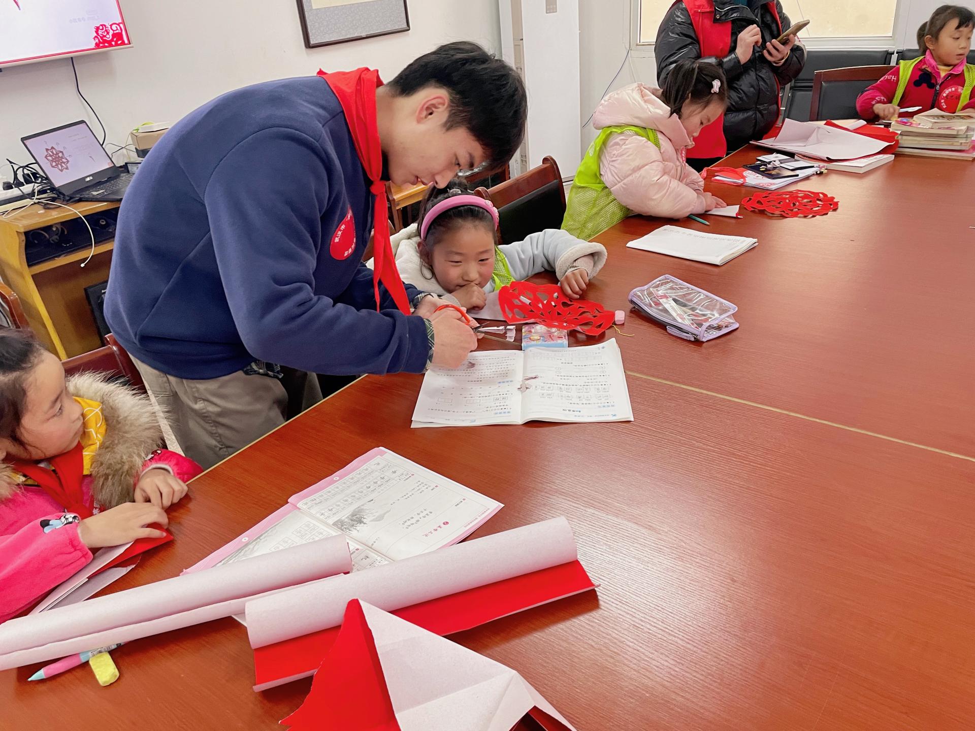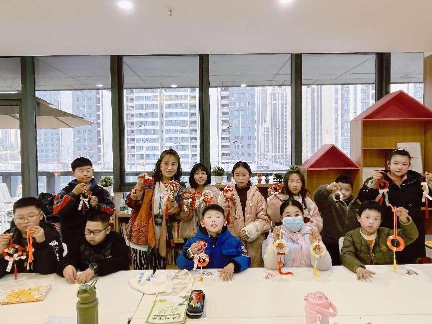 1月29日,武汉市寒假公益托管在武汉市各个社区正式开课。华师附小的彭皓、常亮、王浩宇、胡楚琳、宋书迷、涂明天六位老师组成的志愿者团队走进黄陂区下辖11个社区,为孩子们带来了“中国结艺”、“石榴籽一家亲”、“中国剪纸”等附小特色创意课程,孩子们在趣味满满的课堂中收获成长,体验快乐。