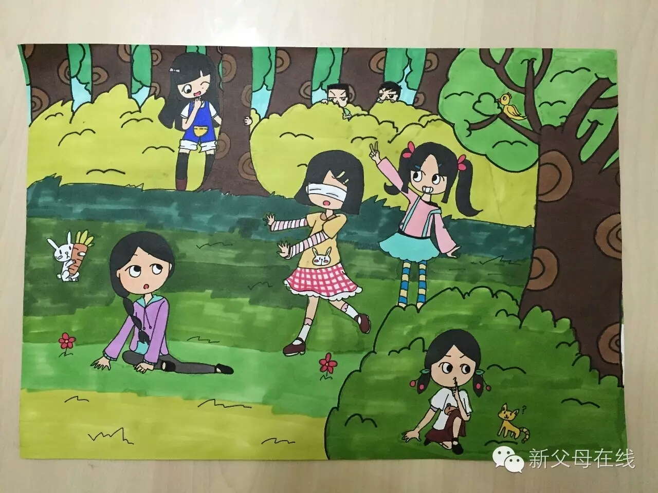 今年,她创作的《捉迷藏》被老师推荐参加洪山区小人才艺术比赛。她不仅画自创的漫画,还画班级黑板报、画手抄报、画英语、数学思维脑图……她开心时画,伤心时也画;振奋时画,气馁时也画……她用手中的画笔把她的喜怒哀乐一一挥洒。每个人都有梳理自己情绪的通道,对于童宇萱而言,画画就是她的通道,我们期待着她能画出更多更好的作品。