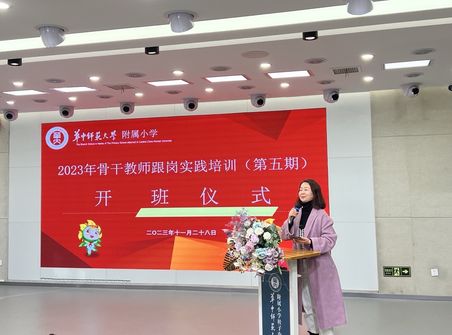 11月28日上午,2023年小学学科骨干教师跟岗培训(第五期)活动正式开启,华师附小杨小军主任主持开班仪式。杨主任向大家详细介绍了本次培训的目的、计划与学习内容,殷切要求所有教师认真参加培训学习,提升教育教学能力。