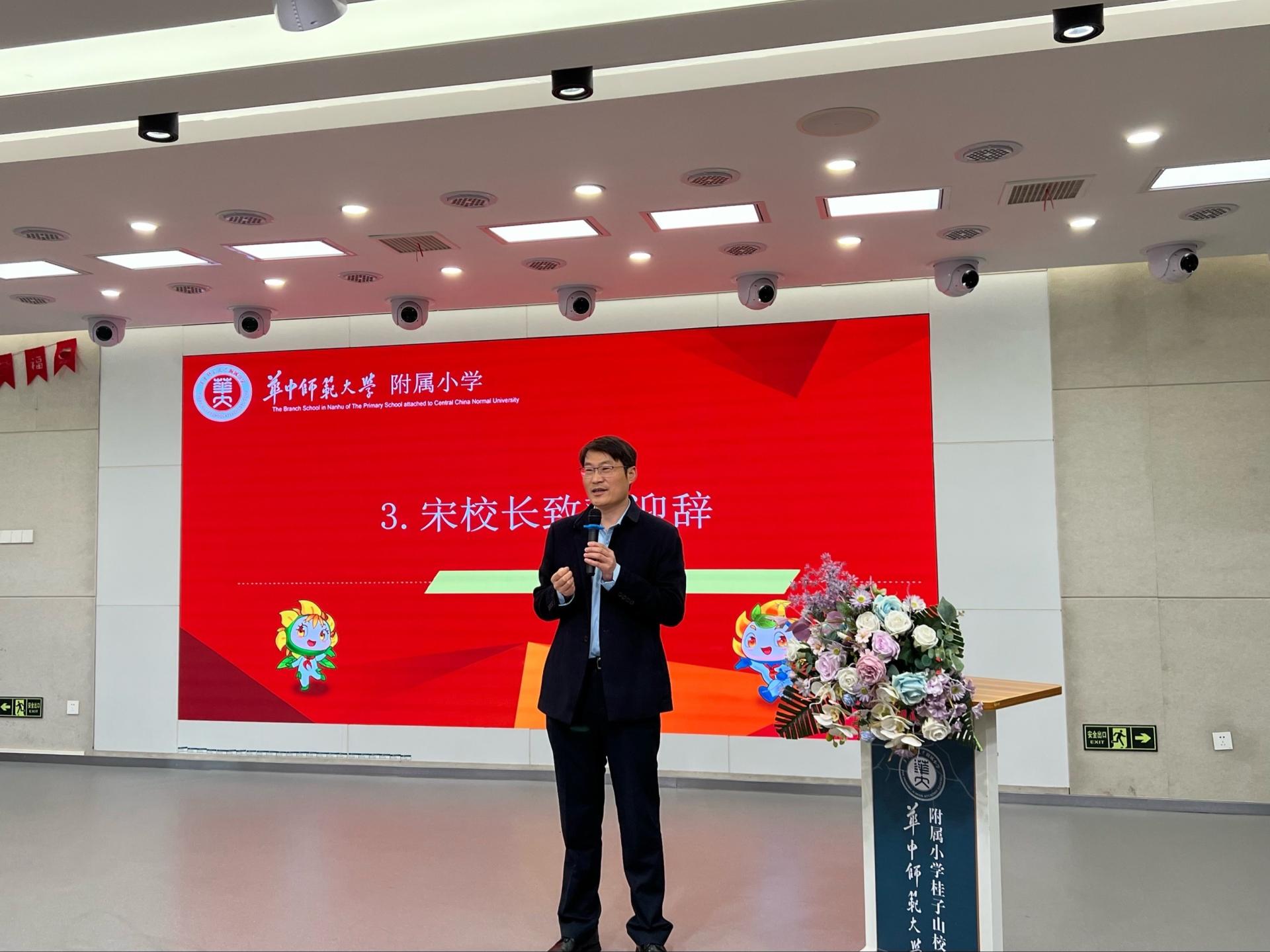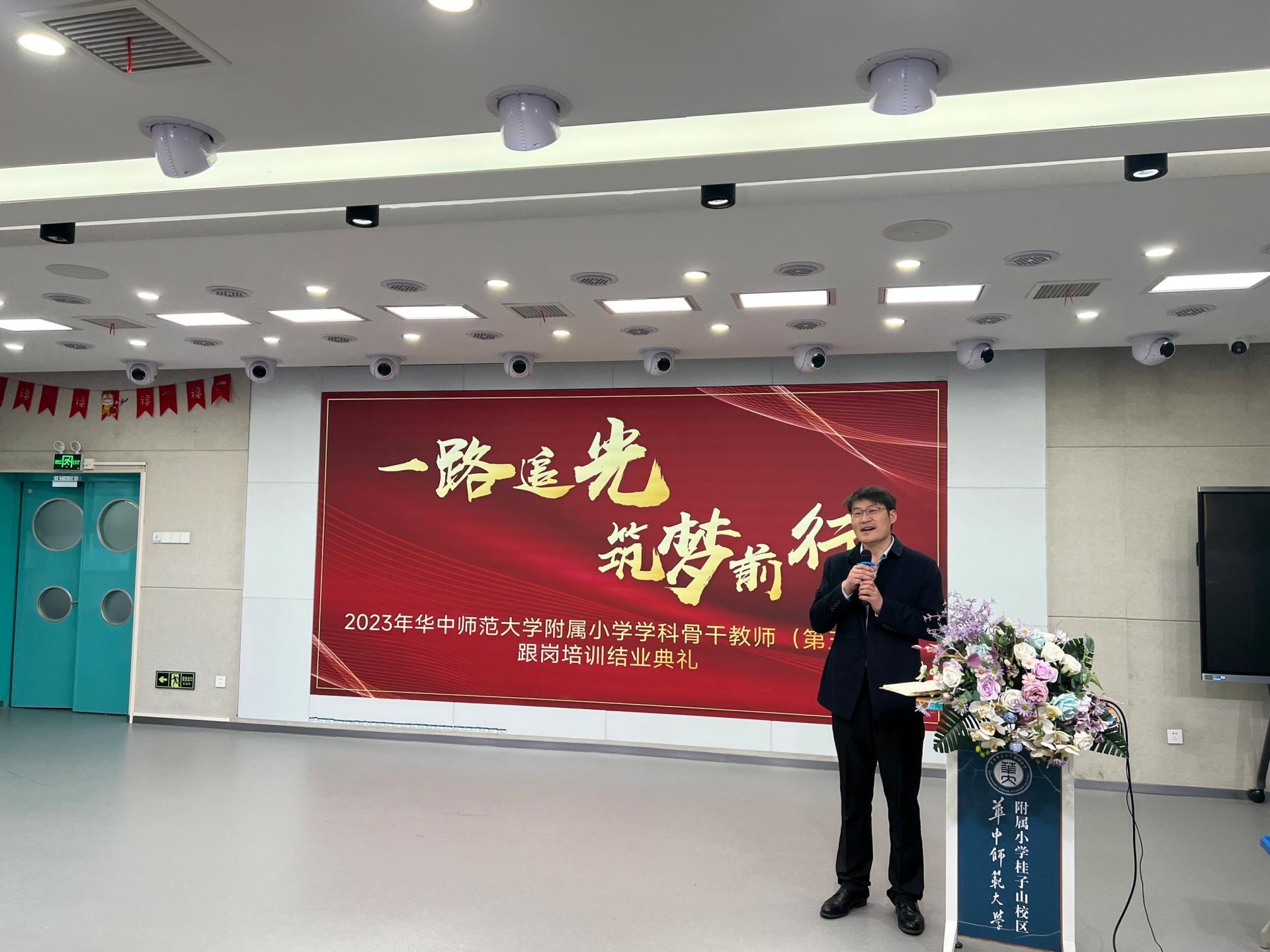 12月6日上午8点半,2023年华师小学学科骨干教师跟岗实践培训结业典礼隆重举行,华大教育集团董事长秦伟、华大教育集团总校长吴晨光、华师附小宋涛校长、甘爱民校长与课程中心杨小军主任莅临本次会议。