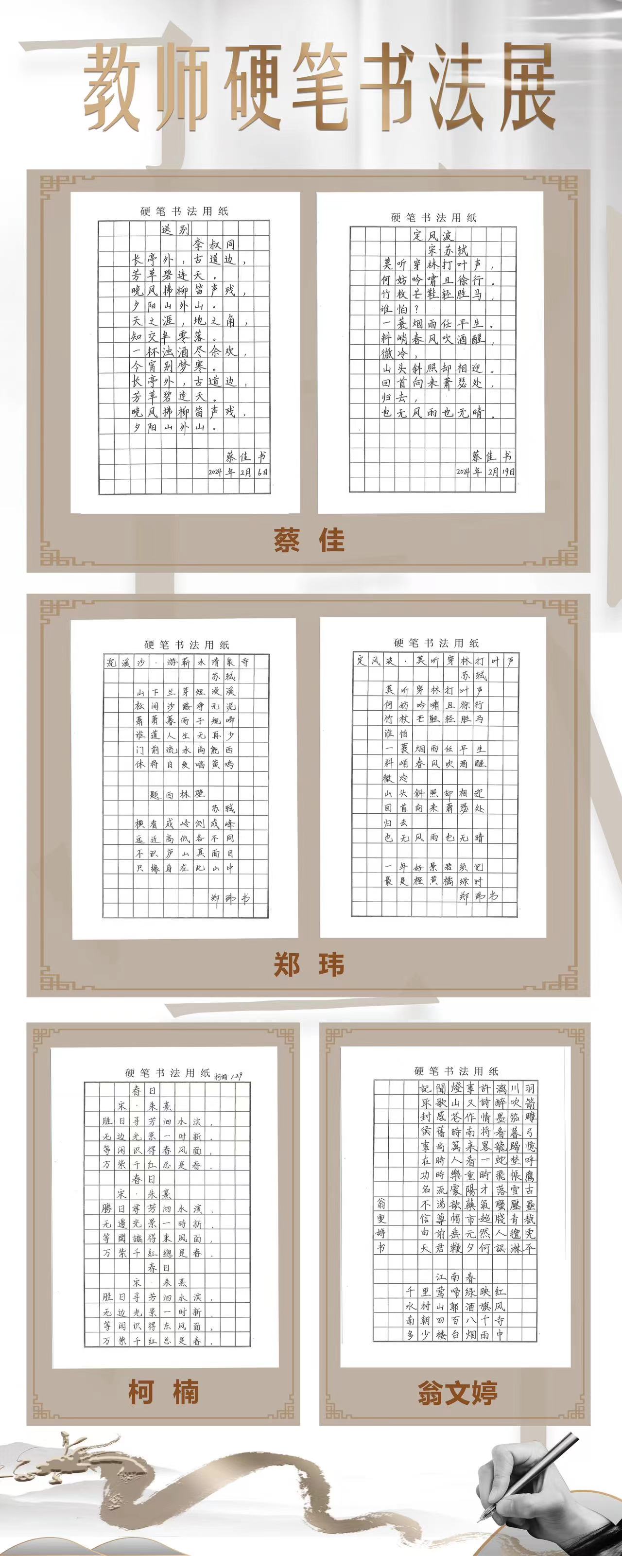 点横撇捺展风采,志存高远方出才。寒假成长营活动为青年教师搭建了成长的阶梯。相信华师附小的青年教师们定能坚持练习,倾心笔端,潜心阅读、笔耕不辍,勇攀高峰。