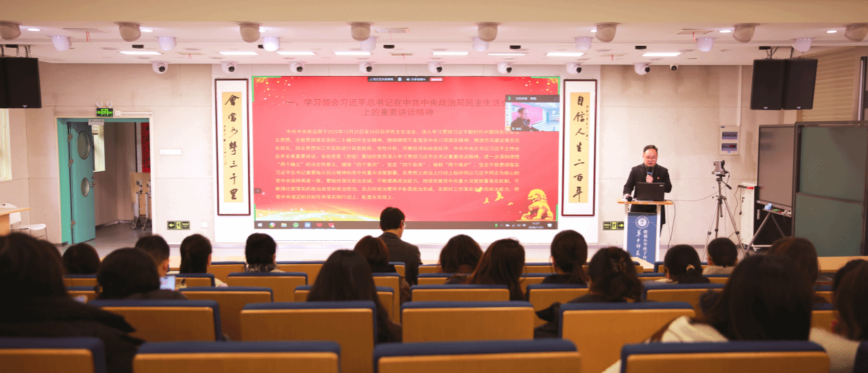 岁末之际进行总结,旨在谋划新的发展篇章;开展理论学习,能够巩固基础、增强实力。2026 年 1 月 23 日下午,华中师范大学附属小学两个校区的教工党支部采用“现场 + 线上”相结合的方式,组织开展了蛇年的最后一次主题党日活动。桂子山校区的党员教师在阶梯教室集中学习,南湖校区的党员教师线上同步参与。活动跨越校区界限、突破时空限制,以规范的组织程序、深入的学习研讨和务实的工作部署,圆满完成了年度党建工作总结,为“十五五”规划开局之年的教育工作奠定了坚实的思想基础。