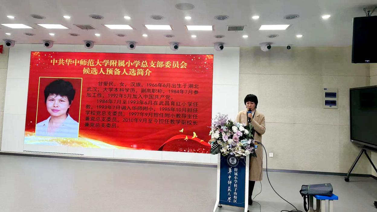 党总支委员彭静同志向大会介绍了中共华中师范大学附属小学总支部委员会九位候选人预备人选的基本情况。