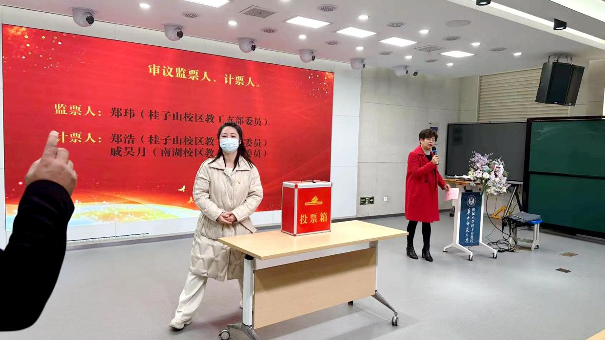 主持人甘爱民同志向大会推荐提名由桂子山校区党支部委员郑玮同志作为本次投票的监票人,桂子山校区党支部委员郑浩和南湖校区教工党支部委员戚昊月两位同志作为本次投票的计票人,全体党员审议并通过了监票人、计票人。