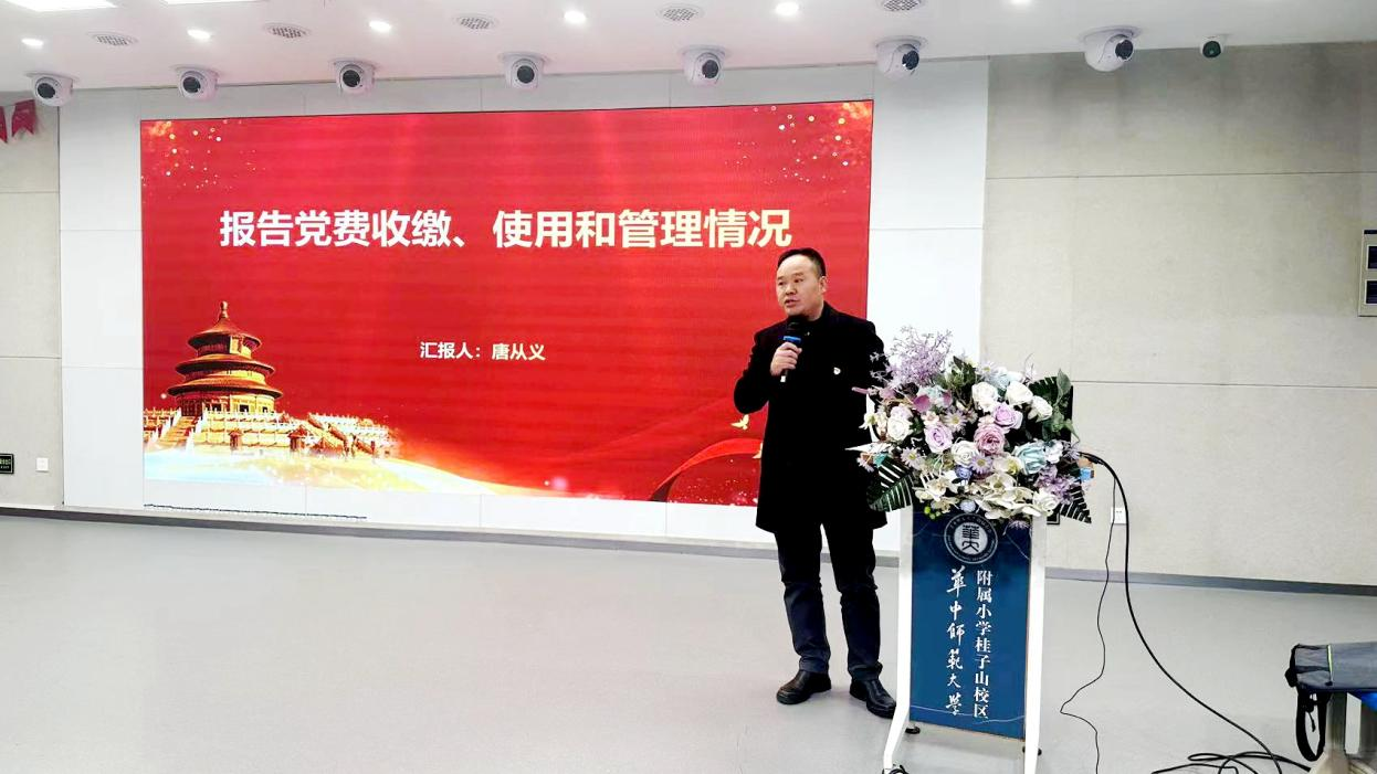 党总支委员唐从义向大会报告了近几年附小党总支党费收缴、使用和管理情况。附小党总支所辖一共三个党支部,共有党员114人,其中退休党员22人,在岗在编党员37人,在岗非在编党员55人。所有党员均按照标准按时交纳了党费。附小党费使用符合相关规定,党费收支经核对,票据相符,账款相等,无挪用、乱批滥用党费的情况。