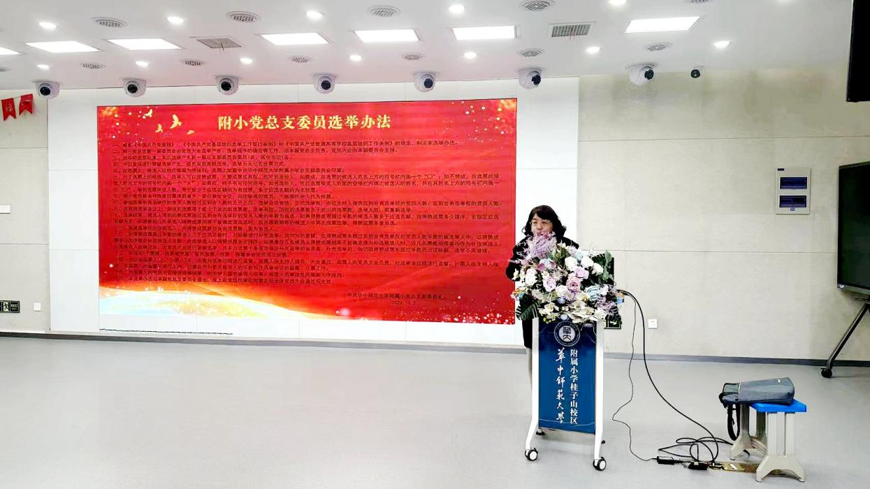 按照《中国共产党章程》《中国共产党普通高等学校基层组织工作条例》和《中国共产党基层组织选举工作条例》等相关规定,经华师大党委批准,中共华中师范大学附属小学总支部委员会于2023年12月29日下午四点在附小桂子山校区四楼阶梯教室召开了全体党员会议,进行换届选举。华中师范大学党委组织部常务副部长兼党校常务副校长龚炜出席大会。