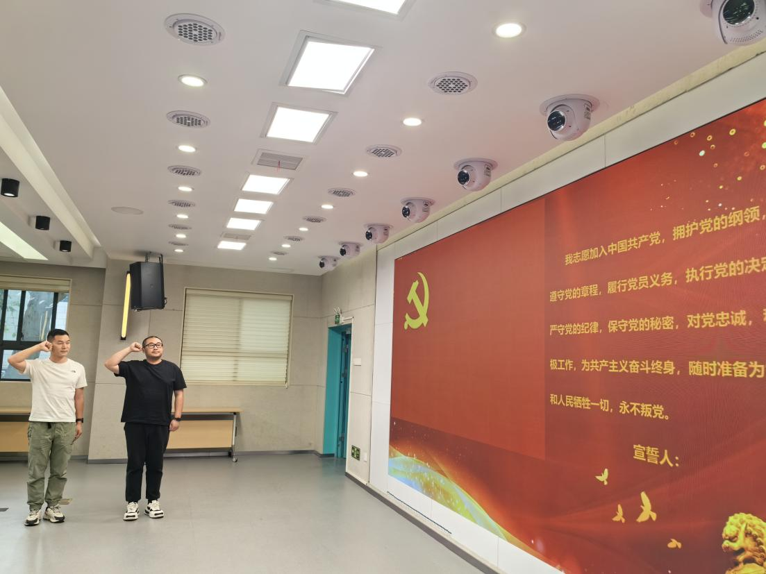 本次主题党日活动为预备党员举行了庄严的宣誓仪式。纪检委员沈芹同志领誓,预备党员桂萌同志、邓常涵同志面向党旗,举起右手握拳,跟读誓词。相信桂萌、邓常涵同志将以此为契机,进一步加强学习,不断努力工作,持续发挥共产党员的模范带头作用!