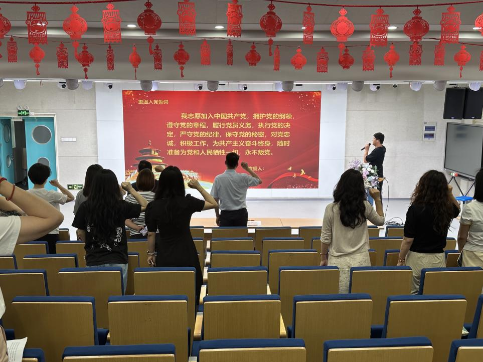 宋涛书记的党课结束后,在党支部统战委员郑浩同志的主持下,党员同志们奏唱国歌,并重温了入党誓词。
