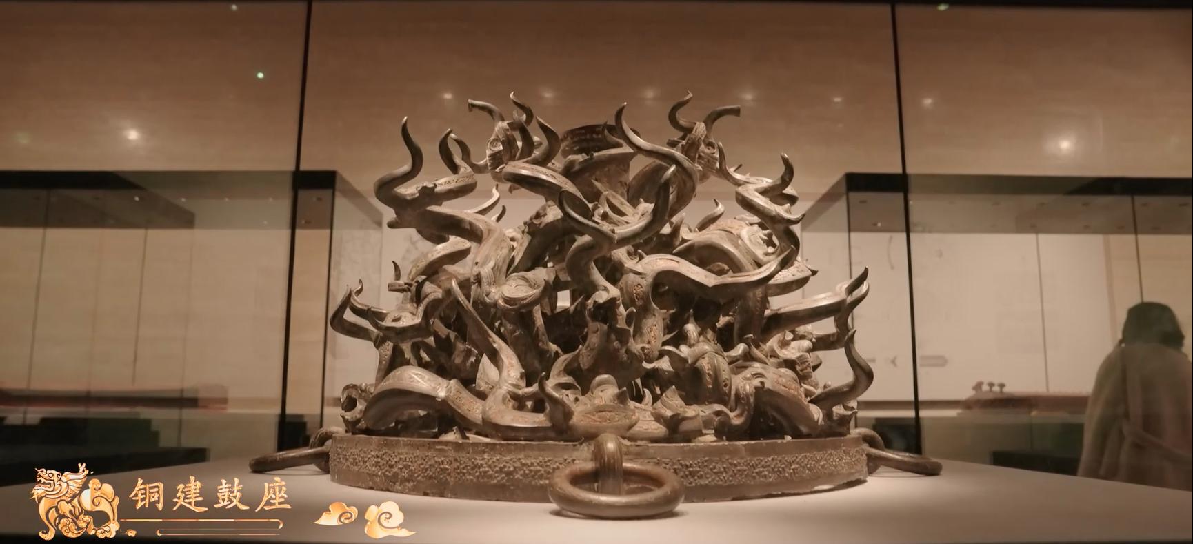 曾侯乙建鼓座是乐器的底座,远看像一团熊熊燃烧的火焰,近看则是由龙蛇盘绕在一块。每当鼓被敲响的时候,下面的龙仿佛被惊醒了,展现即将腾飞的一种姿态,彰显了古人的浪漫情怀。新学期,我们以此展品祝愿队员们龙飞在天,红红火火。