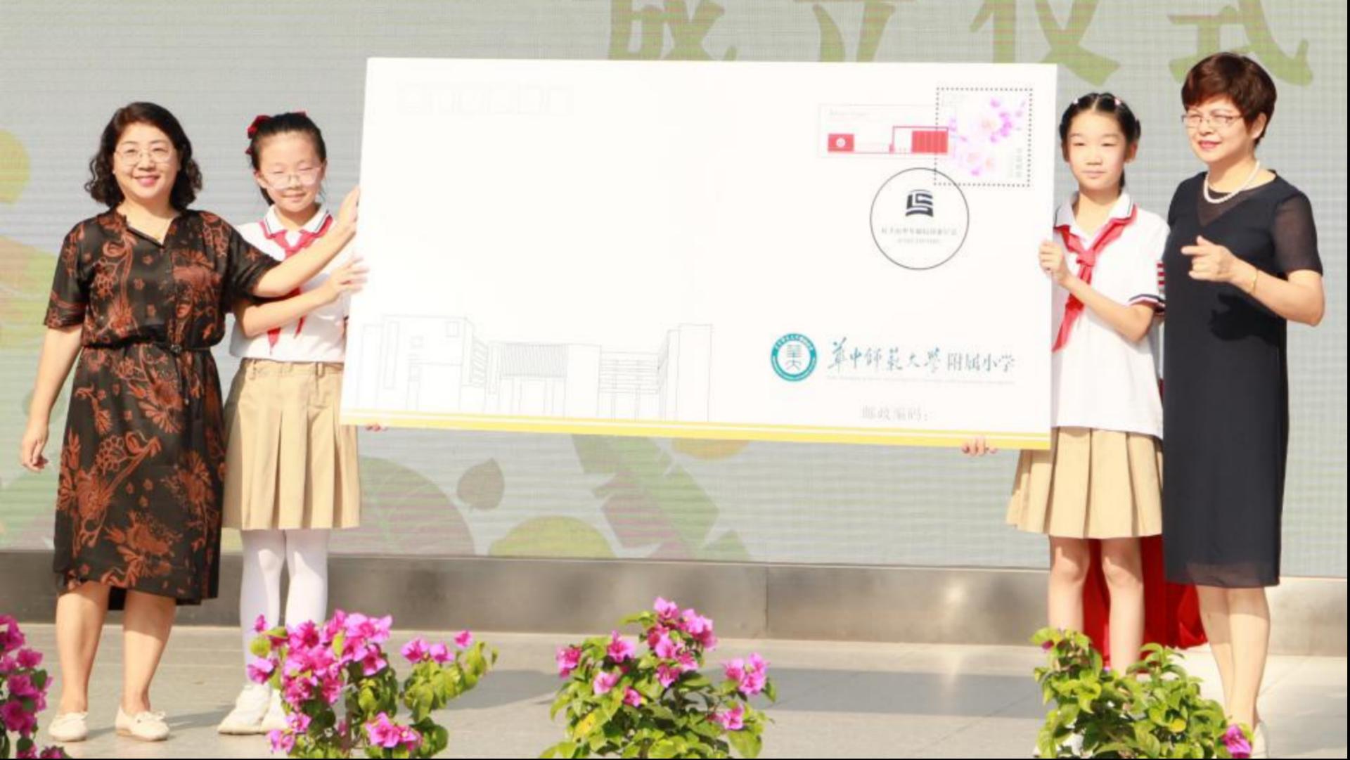 接着,杨冬菊、甘爱民两位副校长共同为桂子山少年邮局信封揭幕。
