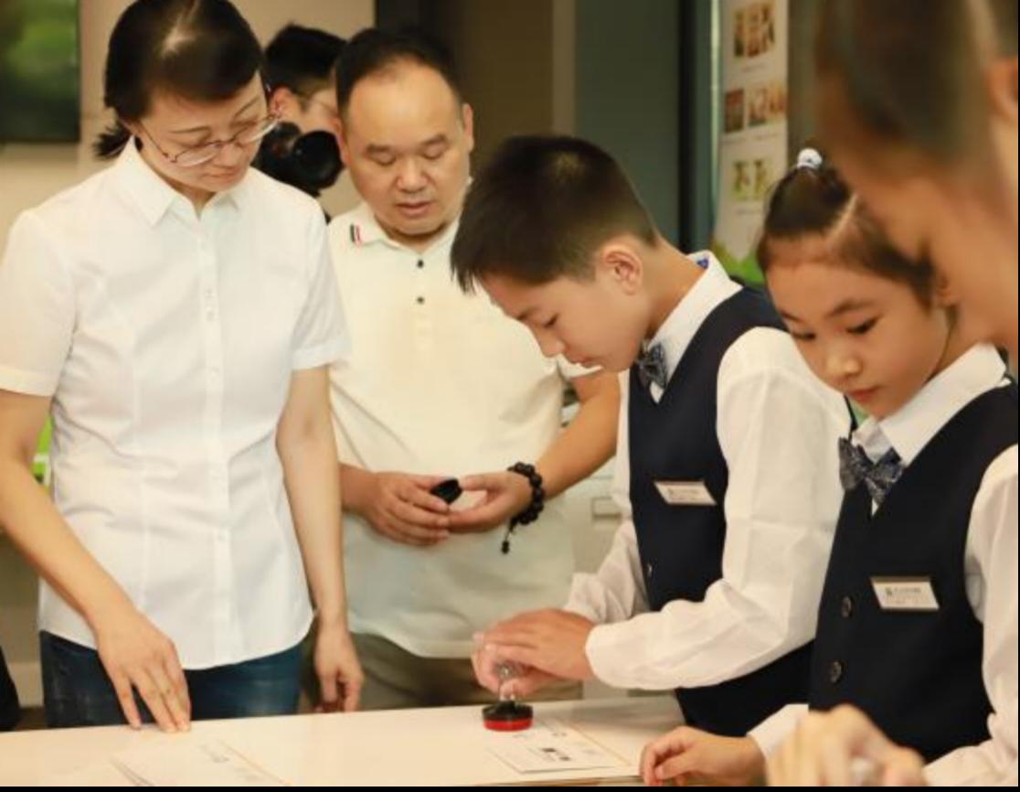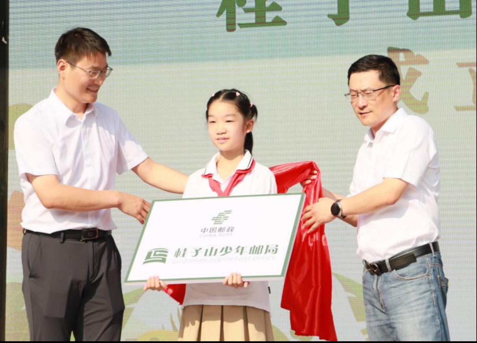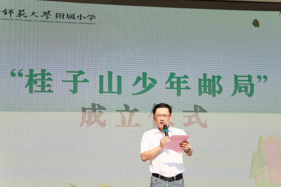 首先,周涛总经理和宋校长共同为桂子山少年邮局揭牌。