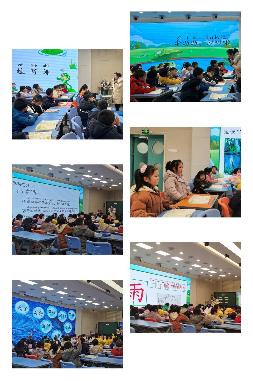活动伊始,102班陈虹希老师为大家带来一节妙趣横生的《青蛙写诗》。她以鲜明的图画、有趣的儿童诗为载体,将阅读和识字教学巧妙融合。她立足学生生活经验,注重对新旧知识的穿插整合,引导学生掌握汉字的构字规律,运用多种方法将识字、写字变得饶有趣味。授课中,她由字到词,由词到句,由句到篇,围绕听说读写开展学习活动,扎扎实实地进行语言训练,课堂行云流水,一气呵成。虽然是一年级刚入学三个月的小朋友,但陈老师通过对学生积极的评价来组织教学,注意调动学生注意力。