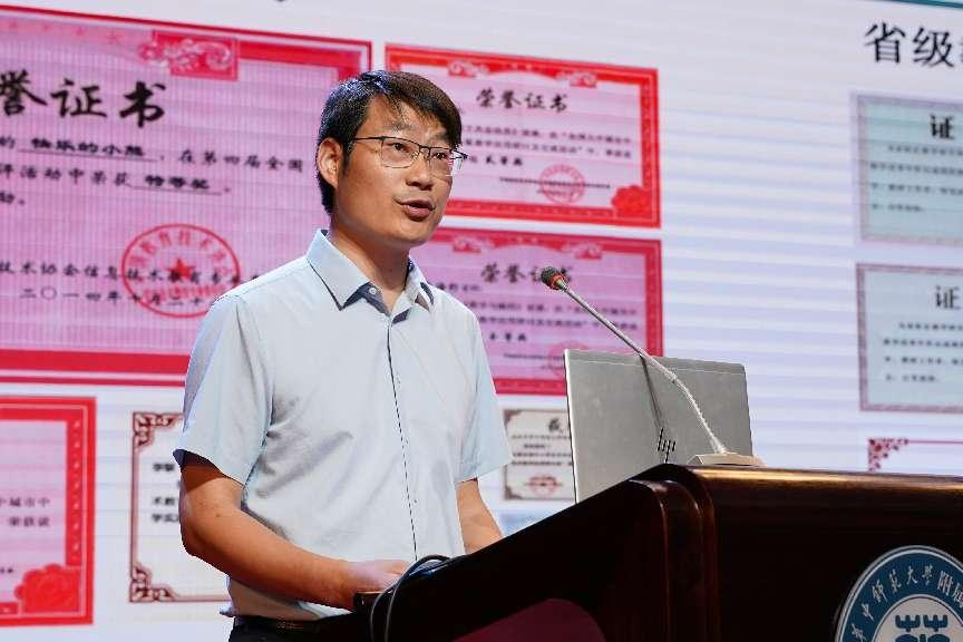 宋涛校长进行“智慧创新、深度融合、创建教育生态”的主题经验分享,对华师附小的信息科技课程的建设发展成效、深度融合成果和智慧校园建设应用模式三方面进行了详细的介绍。华师附小积极探索新课程标准下的教育均衡发展样板,并通过一次次的探索,获得了来自全国省市区各级的肯定。华师附小作为一所省级示范学校,多年来坚持在信息化发展道路上不断探索和实践。学校非常重视信息科技课程的建设实施,深入挖掘信息科技教育的内在优势,准确把握信息科技教育发展趋势,重视结合学生实际开展创新性的教学和实践活动。学校将信息技术的发展与课程进行深度融合,实现了信息技术在各学科中的全覆盖,并在深度应用中取得了许多成果。秉承着在实践中总结经验,在经验中反思助推实践的理念,华师附小信息科技教师在全国省市区各级信息技术融合课堂教学比赛、课题研究、论文撰写、教学资源制作和应用推广中广受好评,部分教师成长为省市区学科带头人、优秀青年教师并逐渐成为该学科领头羊。华师附小在智慧校园建设的道路上一直砥砺前行,学校已经完成四星级智慧校园的建设,正在申报五星级智慧校园,并在原有的信息化基础上完成了新挑战和抓住了新机遇。华师附小在探索智慧校园的道路上感谢各级领导和专家的帮助和指正。
