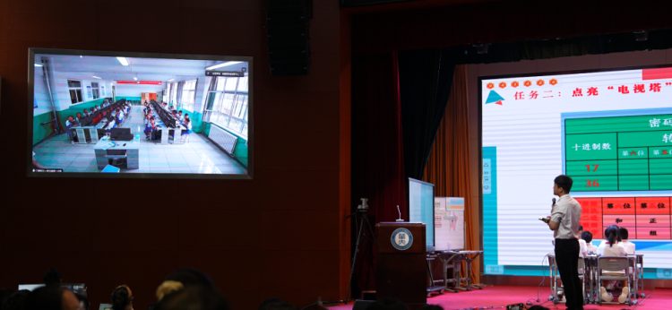 活动第三项,“同课异构展示”。东湖高新区和洪山区分别推荐并展示了的一节围绕二进制的不同教学和学习方式的研讨课课堂。该活动在前期准备阶段经过了多次研讨,要十分感谢武汉市教育科学研究院丁军老师和两区信息中心教研员们对课程设计的大力支持。