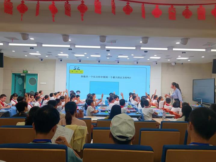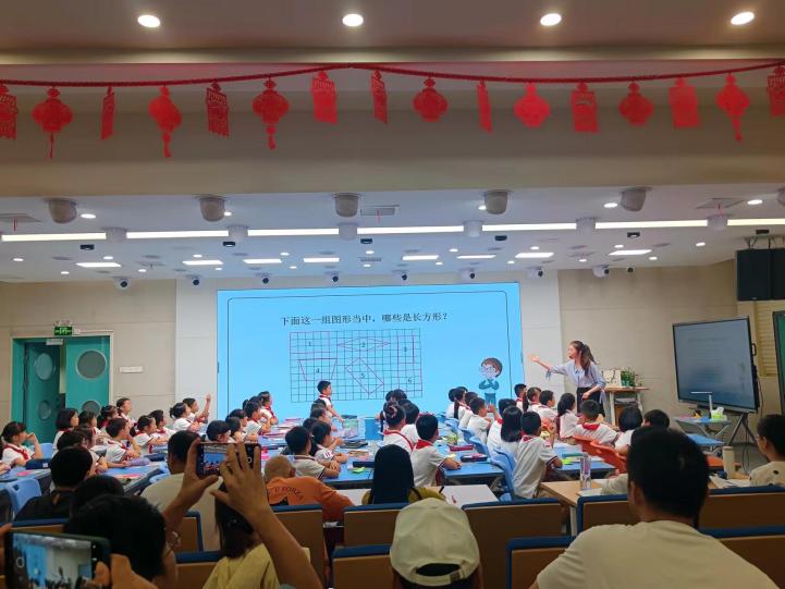 活动通过观摩公开课,学习先进的教学方法和教育理念。华师附小的优秀青年教师彭鸣老师上了一节生动的“长方形和正方形的认识”的公开课,彭老师以学生为主体,给我们展示了一堂富有操作性和启发性的数学课。